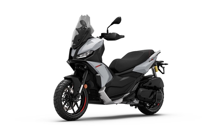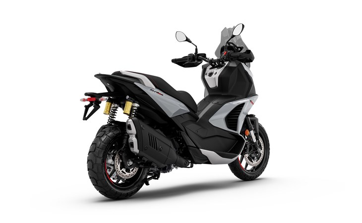 3. Hochwertiges Fahrwerk bereit für Stadt & Offroad: 41-mm-Upside-down-Gabel, langhubige Federung, hohe Bodenfreiheit (190 mm) und All-Terrain-Reifen machen ihn vielseitig wie kein anderer Roller seiner Klasse.
