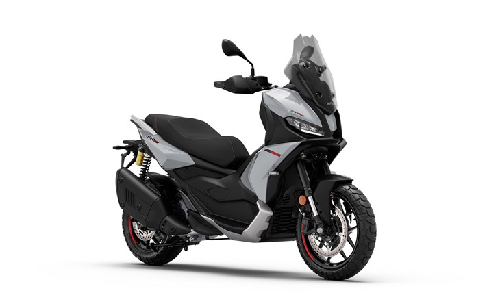 1. Echter Aprilia-DNA-Look: Aggressive Linien, dreifacher LED-Scheinwerfer, sportliche Silhouette der SR GT 400 übernimmt viele Designmerkmale der Aprilia-Sportbikes.